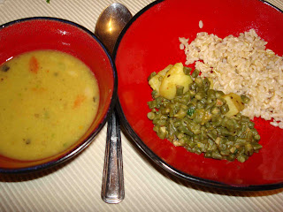 8.21h - and with all this heat, I come home to find Ritesh with four pots going on the stove: He made daal, green beans and potatoes and brown rice. Thanks, hon!